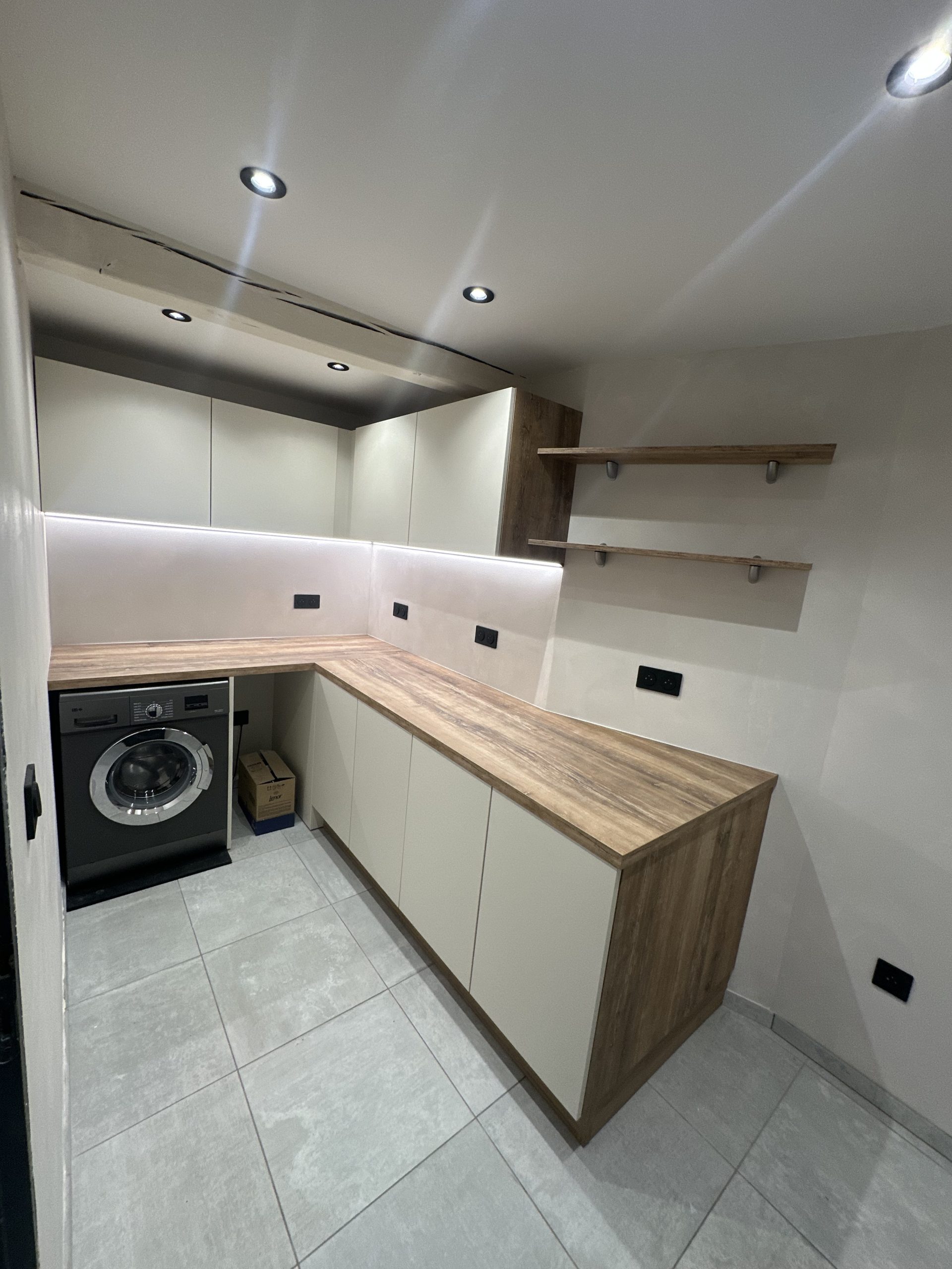 Le client voulait réaliser un angle afin d’éclairer 100% du dessous des meubles de la cuisine. Il s’agit ici d’une réalisation facile pour notre atelier grâce aux découpes sur mesure.