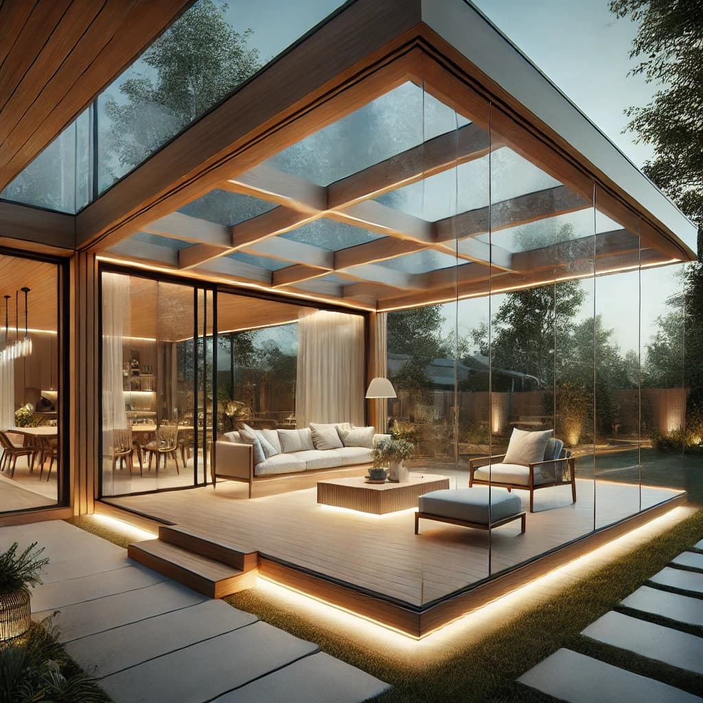 L’éclairage d’une véranda contemporaine joue un rôle clé dans la création d’une ambiance moderne et accueillante. Optez pour des solutions LED discrètes et performantes qui s’intègrent parfaitement aux lignes épurées et au design minimaliste de votre véranda. Les rubans LED, installés sous les profilés ou le long des structures, offrent un éclairage modulable, permettant de varier l’intensité lumineuse selon les moments de la journée. En plus de leur faible consommation énergétique, ces éclairages sont durables et résistent aux conditions extérieures, ajoutant une touche de confort et de sophistication à votre espace, tout en respectant l’environnement.