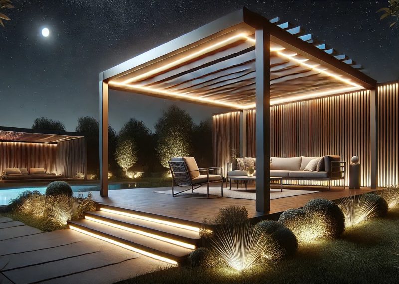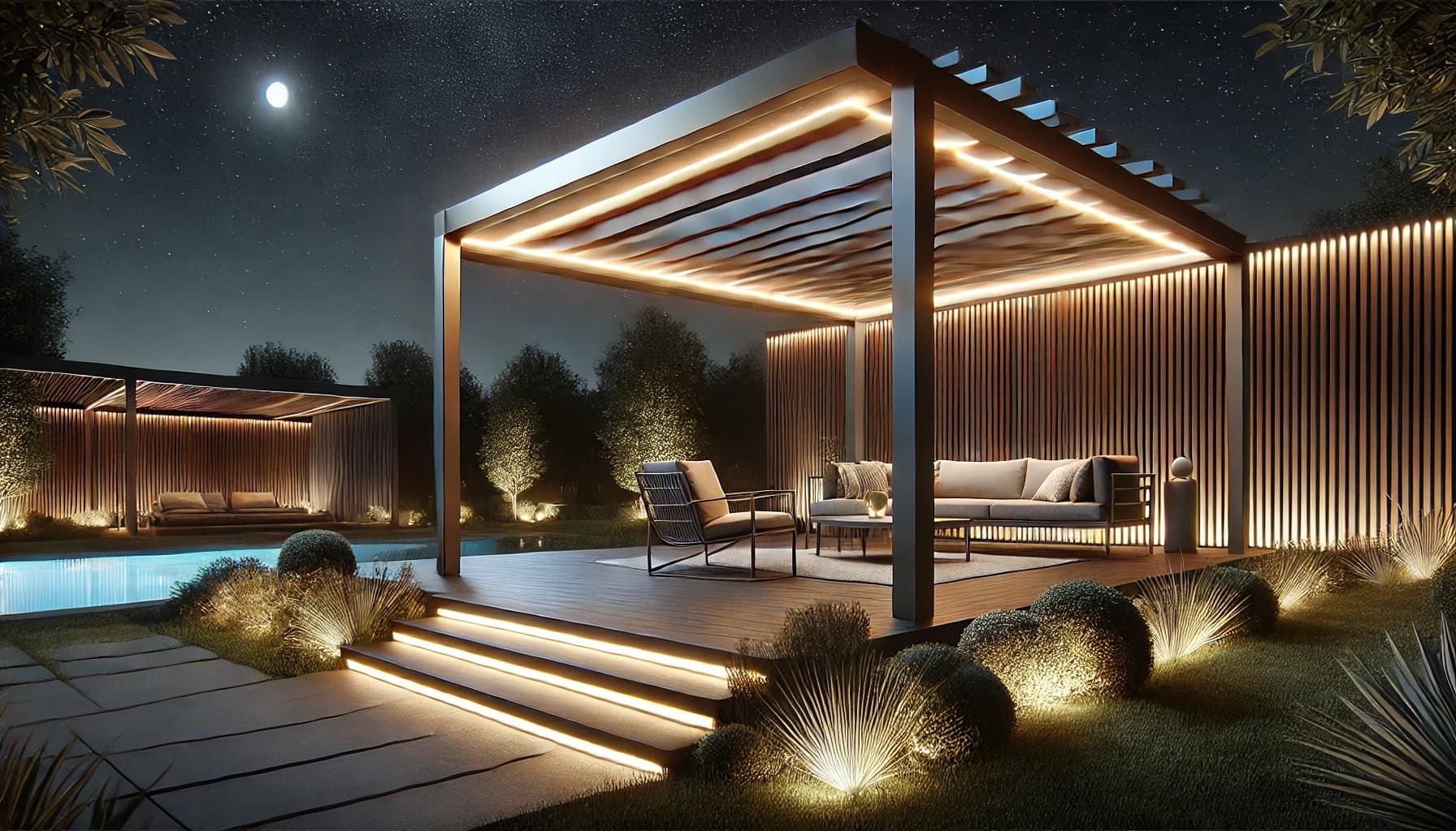 L’éclairage LED est bien plus qu’un simple accessoire pour votre pergola bioclimatique. Il en devient un véritable atout, alliant esthétique, confort et praticité. Voici pourquoi intégrer des LED sous votre pergola est une idée lumineuse.
